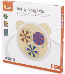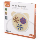 Tri ľahko otočné kolieska v základných farbách vytvárajú pri točení pútavé vzory. Deti sa učia rozpoznávať farby a vnímať pohyb a rytmus hravou formou.