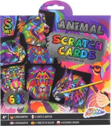 Vyškrabovacie obrázky, sada obsahuje 6 obrázkov a plastové pero na vyškrabovanie. Rozmery 21,5 × 21,5 cm. Vek 4+