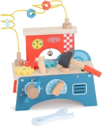 Tento pracovný stolík s množstvom aktivít je ideálny na rozvoj jemnej motoriky a koordinácie ruka-oko. Pomáha rozvíjať kreativitu, predstavivosť a je perfektný pre metódu Montessori.