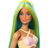 Opaska na vlasy dodáva modro-žltým vlasom morský štýl. Preskúmajte ďalšie bábiky z kolekcie a zažite príbehy plné priateľstva a fantastických ríš. Od morských panien a jednorožcov po princezné - bábiky Barbie sú dokonalým darčekom pre deti!