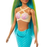 Objavte krásu podmorského sveta pri hraní s touto unikátnou kolekciou bábik morských panien Barbie! Táto konkrétna bábika má korzet inšpirovaný mušľami a tyrkysový chvost s plutvou zdobenou efektom ombre.
