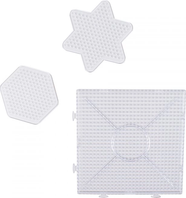 Priehľadné podložky PLAYBOX pre zažehlovacie koráliky uľahčia tvorenie vďaka možnosti vložiť predlohu pod podložku. V balení nájdete 3 tvary – štvorec, šesťuholník a hviezdu. Podložky možno prepájať a majú ekoznačku Nordic Swan, takže sú ideálne na kreatívne hranie pre celú rodinu.