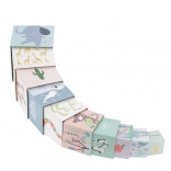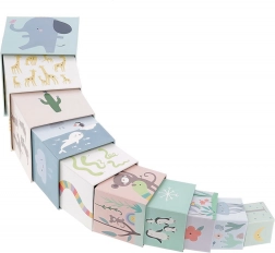 Kocky sú vyrobené z kvalitného, ľahkého a odolného kartónu. Vďaka postupne sa zmenšujúcej veľkosti sa ľahko ukladajú na seba aj vkladajú do seba, takže šetria miesto a sú ideálne aj na cesty. Dizajn od Sarah Betz podčiarkuje hravosť a podporuje fantáziu aj sústredenie.