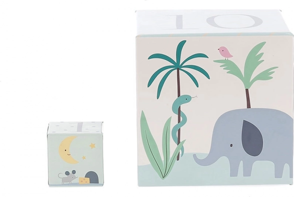 Táto prvá sada kociek sa prispôsobí tempu rastu vášho dieťaťa: od jednoduchej manipulačnej hry cez stavanie veže až po učenie čísel 1–10. Každá kocka je zdobená nežnými ilustráciami zvierat z celého sveta a jasnými číslicami, ktoré prirodzene vedú k spoznávaniu a pomenovávaniu.