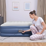 Dvojosobová nafukovacia matrac BESTWAY ponúka pohodlné spanie doma aj v stane. Má mäkký flokovaný povrch, odolnú konštrukciu Tritech a vstavanú elektrickú pumpu 220–240 V, ktorá matrac nafúkne za 4 minúty. Vďaka maximálnej nosnosti 300 kg, rýchloodvzdušňovaciemu ventilu a integrovanému vankúšu zaručuje komfortné a praktické používanie.