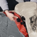 Praktický pumpovací vak AirCinch pripojíte k ventilu, naberiete vzduch a stlačením naplníte matrac. Približne 90 sekúnd a ~12 stlačení stačí na dosiahnutie požadovanej tuhosti.
