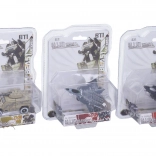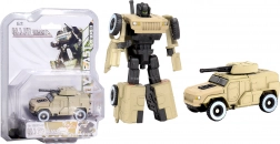 Zábavný kovový autorobot s dĺžkou 11 cm, ktorý poteší malých fanúšikov vojenskej techniky. Ponúka 4 varianty – svetlá stíhačka, tmavá stíhačka, tank a vojenské vozidlo. Odolné kovové prevedenie zaisťuje dlhú životnosť a skvelú hrateľnosť.