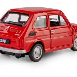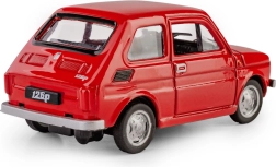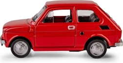 Prineste si domov kúsok automobilovej histórie. Tento detailne spracovaný model FIAT 126p v sýto červenej farbe verne zachytáva charakter legendárneho mestského vozidla, ktoré dobývalo cesty celej Európy. Pevná kovová (die-cast) karoséria v kombinácii s plastovými doplnkami zaručuje dlhú životnosť a pôsobivý vzhľad.