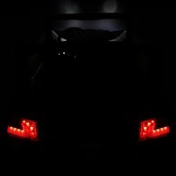 Predné aj zadné LED, prehľadná palubovka s kľúčikom a audio panel: MP3, USB, SD, AUX, Bluetooth aj FM rádio. Nechýbajú zvuky na volante a ukazovateľ batérie.