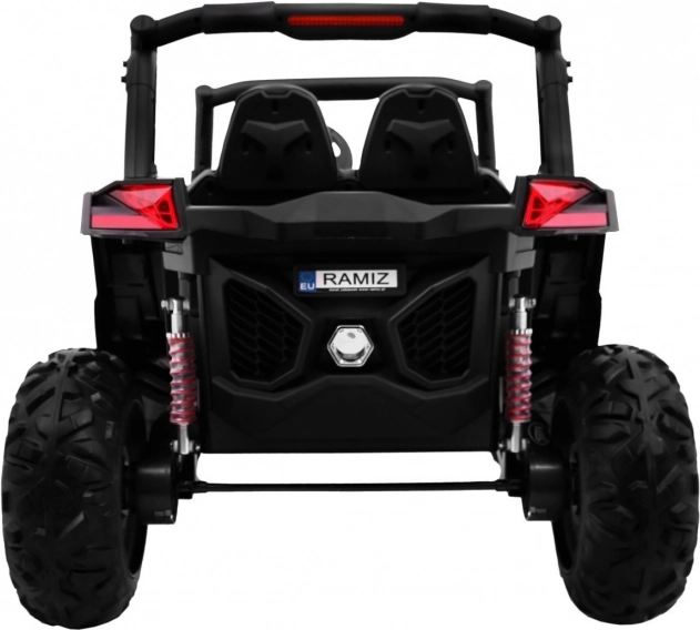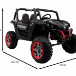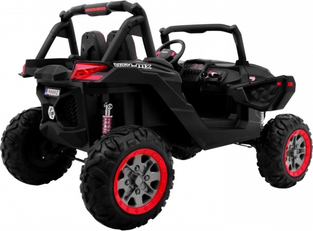 Užite si terénnu zábavu s detským elektrickým buggy SuperStar 4x4 v elegantnej čiernej. Vďaka prepínateľnému náhonu 2×4 / 4×4, štyrom motorom 4×45 W a veľkým EVA kolesám 35 × 15 cm zvládne nerovnosti aj záhradný terén. Regulovateľné, závitové odpruženie (2× vpredu, 2× vzadu) a vysoký svetlý podvozok 23 cm sa postarajú o pohodlnú jazdu.