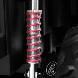 Veľké kolesá 35×15 cm z EVA peny tlmia nárazy a nehučia. Závitové, regulovateľné pružiny vpredu aj vzadu udržia komfort a istotu aj mimo spevnené cesty.