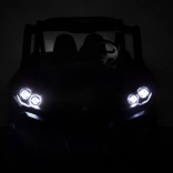 Bezpečnosť a kontrolu zvyšuje diaľkové ovládanie 2,4 GHz s tromi rýchlosťami a bezpečnostným tlačidlom STOP. Deti poteší plynulý rozjazd, voľba vpred/vzad a 3 stupne vpred pomocou radiacej páky. Interiér dopĺňa kľúčové štartovanie, otváracie dvere s blokáciou, bezpečnostné pásy a praktický zadný box.