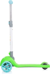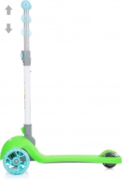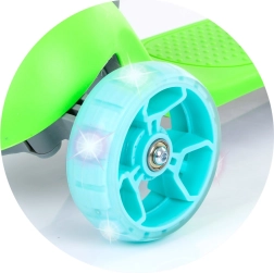 Ľahká a stabilná detská kolobežka na prvé jazdy od 3 rokov. Ponúka tri kolesá pre maximálnu stabilitu, výškovo nastaviteľné riadidlá v 3 polohách a farebné LED svetlá v kolesách, ktoré zvyšujú bezpečnosť aj zábavu. Má široké protišmykové stupátko, gumové rukoväte a nášľapnú zadnú brzdu. Nosnosť až 50 kg a jednoduché zloženie riadidiel pre kompaktné uloženie.