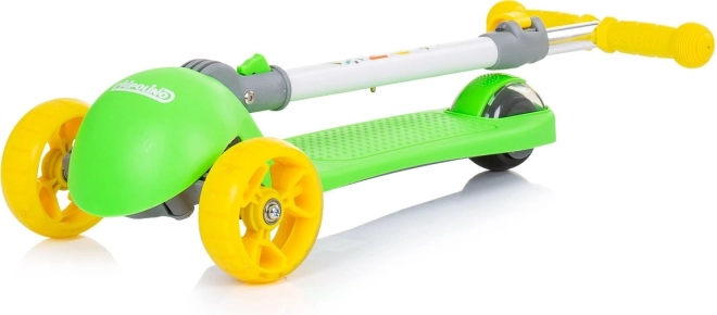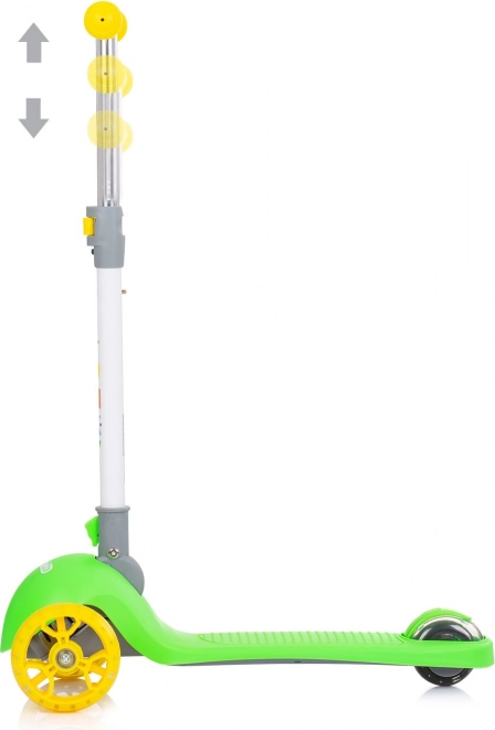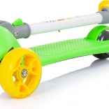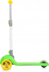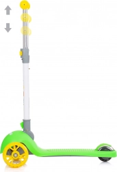 Doprajte deťom zábavnú a bezpečnú jazdu s kolobežkou CHIPOLINO Funky v zeleno‑žltom prevedení. Ľahký hliníkový rám uľahčuje ovládanie, zatiaľ čo široké protišmykové stúpadlo a gumové rukoväte zaisťujú istotu pri jazde. Farebné LED diódy v predných aj zadných kolesách sa rozsvietia pri pohybe a zvyšujú viditeľnosť.
