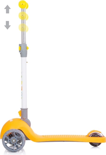 Kolobežka Chipolino Funky Orange je skvelou voľbou pre prvé jazdy detí. Vďaka ľahkému hliníkovému rámu sa ľahko ovláda, skladacie riadidlá uľahčia prenášanie a uloženie a široké protisklzové stúpadlo zaisťuje istotu pri odrazoch.