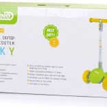 O ešte zábavnejšiu jazdu sa starajú predné aj zadné kolesá s farebnými LED svetlami, ktoré sa rozsvietia počas pohybu. Nášľapná brzda na zadnom kolese umožňuje bezpečné a intuitívne zastavenie a gumené protisklzové rukoväte držia pevne v ruke.