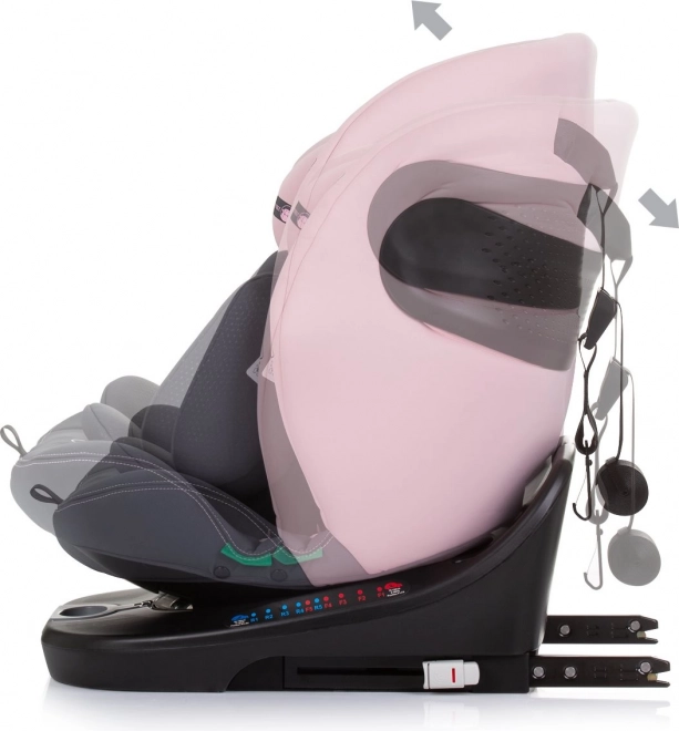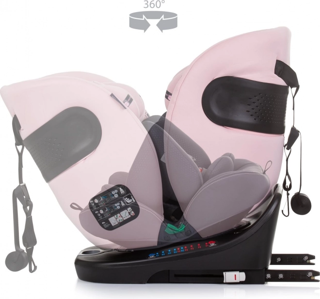 Univerzálna detská autosedačka pre výšku 40–150 cm s ISOFIX, Top Tether a 360° otočnou základňou pre jednoduché usadenie dieťaťa. Ponúka jazdu proti aj v smere, 5-bodové pásy, ochranu proti bočnému nárazu a pohodlné polstrovanie vrátane 3D vložky. Schválené podľa R129 i-Size pre bezpečné cestovanie od narodenia až približne do 12 rokov.