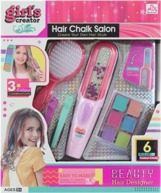 Súprava pre malé kaderníčky. Balenie obsahuje kriedy na vlasy, aplikátor, kefou na vlasy a dve sponky. Balené v krabici. Rozmery balenia cca 26×31×6 cm. Vek 5+