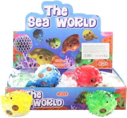 Antistresový mačkací loptička v tvare štvorzubca, z ktorého vylieza hmota. Rozmer cca 9 × 5 × 6 cm. Balené v sáčku. Vek 3+