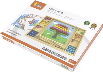 Drevená hra "Chyť a Zoraď" od značky Viga pre deti od 3 rokov, ktorá rozvíja nielen ich schopnosť rozpoznávať farby a vzory, ale aj koordináciu ruky a oka a koncentráciu.