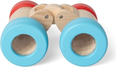 Drevený ďalekohľad je navrhnutý pre malé detské ruky – je ľahko uchopiteľný, odolný voči bežnému používaniu a svojimi rozmermi sa pohodlne zmestí do batôžka na výlety. Realistický vzhľad a farebné akcenty v červenej a modrej podnecujú predstavivosť a vyzývajú deti k pozorovaniu okolia.