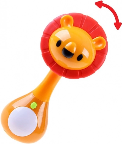 Roztomilá interaktívna hrkálka v tvare leva poteší deti veselými melódiami, svetelnými efektmi a viacerými režimami hry. Vďaka ergonomickému tvaru sa dobre drží v malých ručičkách a vybrané časti z mäkkého gumového materiálu poslúžia ako hryzátko. Hrkálka ponúka 3 herné režimy, svietiace bruško meniace farby a príjemné zvuky, ktoré rozvíjajú sluch aj motoriku dieťaťa.