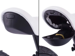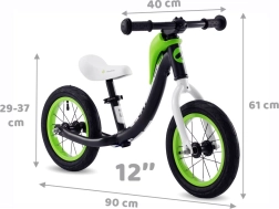 Vďaka nafukovacím 12" kolesám sa odrážadlo plynule odvaľuje aj po menej rovnom povrchu. Rýchla regulácia sedla (cca 31–38 cm) umožní prispôsobiť výšku rastu dieťaťa. Praktický prenášací popruh oceníte na výletoch aj po skončení zábavy.