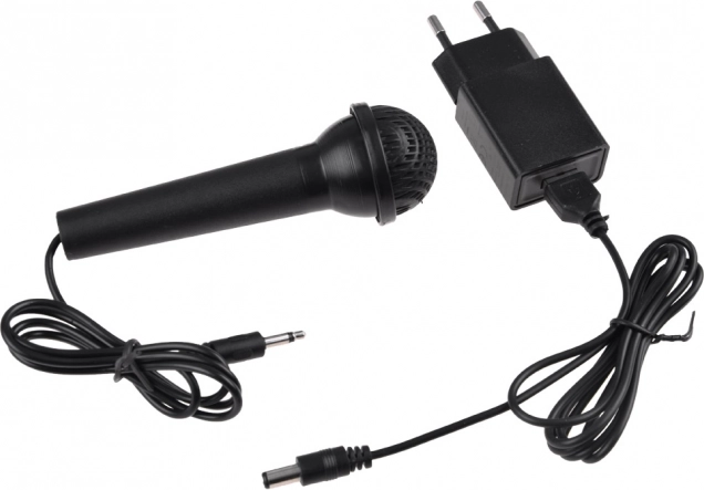 Vstup pre mikrofón, AUDIO IN pre telefón alebo prehrávač a PHONE/LINE OUT pre slúchadlá či externé repro. Napájanie cez USB nabíjačku.