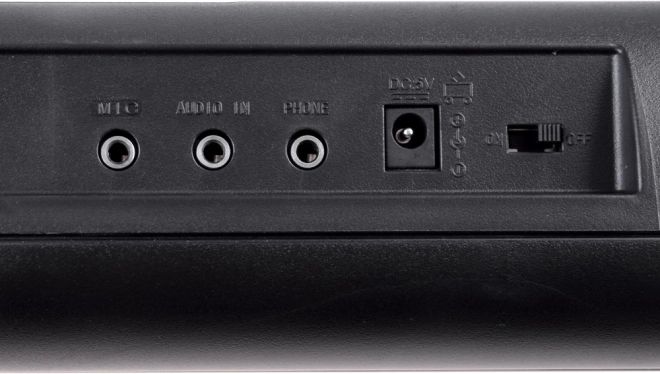 - MIC (vstup pre mikrofón), AUDIO IN (line in), PHONE/LINE OUT (slúchadlá / výstup do externých reproduktorov)