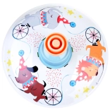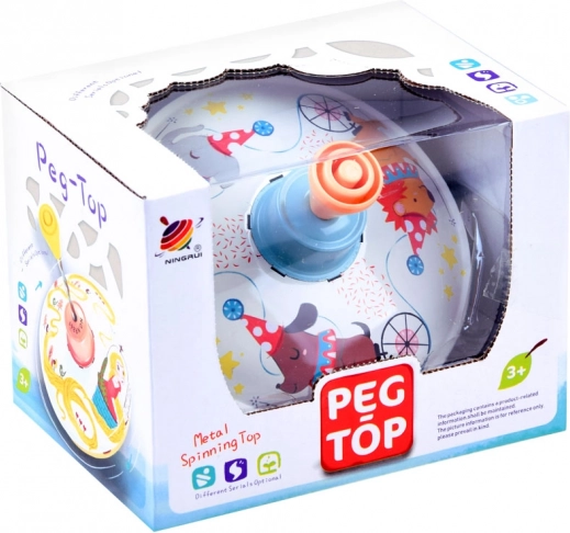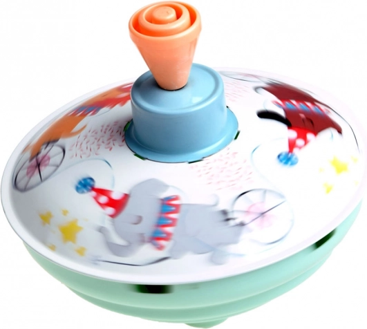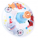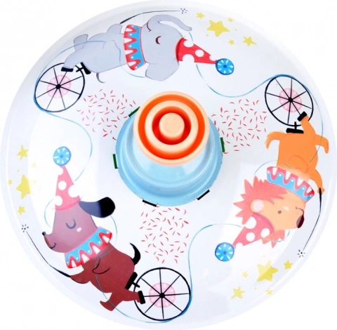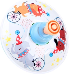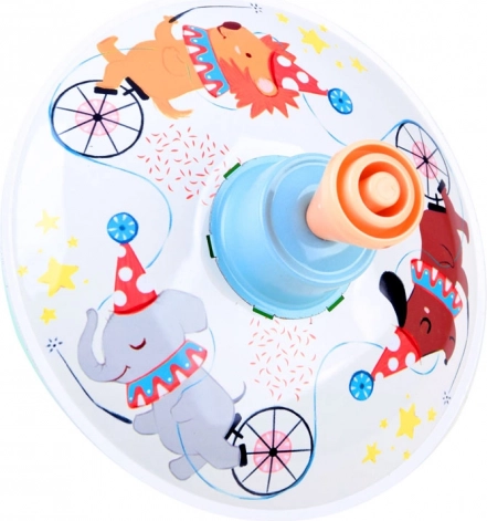 Hravá plocha je zdobená hravými zvieracími ilustráciami s cirkusovou témou, ktoré podporujú fantáziu a vizuálne vnímanie. Kovové telo v kombinácii s plastovým madlom zabezpečuje odolnosť aj pri každodennom používaní. Káča je skvelá na rozvoj jemnej motoriky, koordinácie ruka–oko a trpezlivosti.