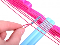 Ružovo-modrý stav drží nite pevne na mieste a umožňuje pohodlné navliekanie korálikov aj pravidelné vzory.