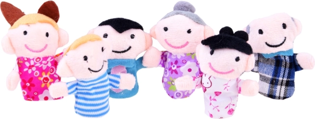Roztomilé prstové bábky babičky, deduška, mamičky, otecka a dvoch detí sú ideálne pre hranie rôznych scenárov a prinášajú nespočet príbehov do detskej fantázie. Táto sada plyšových bábok na prsty nielen učí a baví, ale aj rozvíja kreativitu a predstavivosť malých hercov. S bábkami možno obohatiť večerné rozprávky a priviesť ich k životu, čo poteší každého malého diváka.