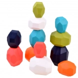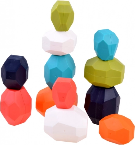 Vďaka plochým stranám kameňov kombinujú deti rôzne stohovacie kombinácie.