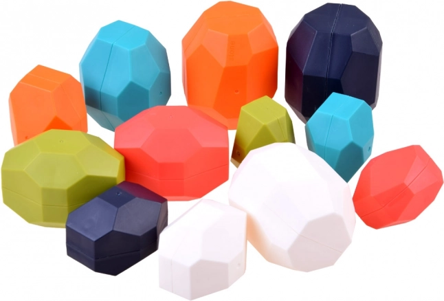 V balení je 12 kameňov rôznych veľkostí, tvarov a farieb vyrobených z kvalitného plastu. Najväčší kameň meria približne 7,5 cm x 5 cm x 5 cm a najmenší má približne 5 cm x 3,5 cm x 3,5 cm. Sada je ideálna ako darček a pre uchovávanie stavebných kameňov.