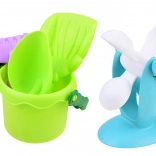 Obsahuje rôzne tvary a nástroje pre tvorbu unikátnych pieskových sôch a diel.