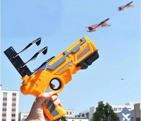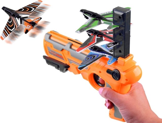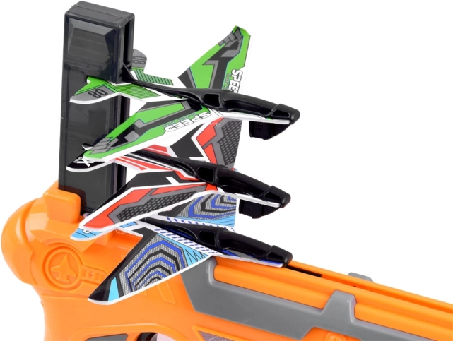 Veľká letecká odpaľovacia pištoľ je našou najnovšou ponukou. Odpaľovacie zariadenie má zásobník, do ktorého možno nabiť tri lietadlá. Aby ste mohli pokaždé vystreliť jedno lietadlo, musíte zásobník pištole znovu nabiť. Po každom odpálení sa zásobník spustí, takže môžete vystreliť až tri lietadlá v jednom kole. Zbraň je celá vyrobená z ľahkého plastu a lietadlá sú z penového EPP. Vďaka svojej ľahkosti sa lietadlo vznesie do vzdialenosti niekoľkých metrov. Každý fanúšik streleckých súťaží, ktorý má také odpaľovacie zariadenie, bude môcť trénovať najdlhšie lety a potom usporiadať súťaže s priateľmi.