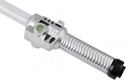 Ergonomická strieborná rukoväť s tlačidlom na aktiváciu svetla a zvuku zabezpečuje istý úchop a intuitívne použitie.