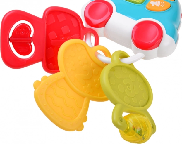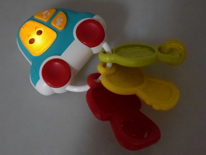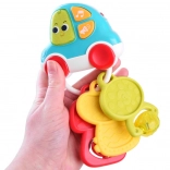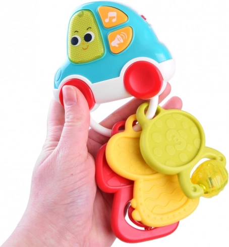 Hľadáte hračku, ktorá zabaví a zároveň podporí vývoj vášho bábätka? Interaktívne kľúče kombinujú hudbu, svetlo a rôzne textúry pre bohaté zmyslové podnety. Dieťa si užije 5 veselých melódií, reálne zvuky auta (otváranie, klaksón, cúvanie, bežiaci motor, brzdenie) aj krátke vtipné efekty, ktoré sprevádza blikajúce svetielko. Ľahká konštrukcia a ergonomický tvar sú prispôsobené drobným rúčkam.