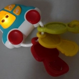 • 3 rôzne kľúče: otočný prvok pre pršteky, mäkké hryzátko s masážnymi výstupkami a hrkálka s korálkami