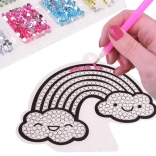 Táto zábavná DIY sada na diamantové maľovanie premení voľné chvíle na kreatívne dobrodružstvo. Deti si podľa priložených šablón ozdobia trblietkové nálepky aj veľké dekorácie na postavenie alebo zavesenie – ideálne na okno, písací stôl či na ozdobenie zošitov. Aplikácia kamienkov je vďaka vosku a aplikátoru jednoduchá a presná, takže si tvorenie užijú začiatočníci aj pokročilí.