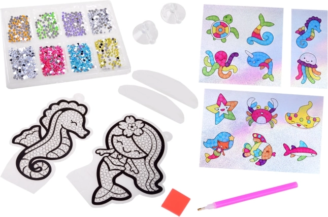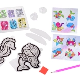 Vytvorte trblietavé samolepky a dva závesné obrázky s morskými priateľmi. Hotové výtvory ľahko postavíte na podstavce alebo zavesíte prísavkami s háčikmi.