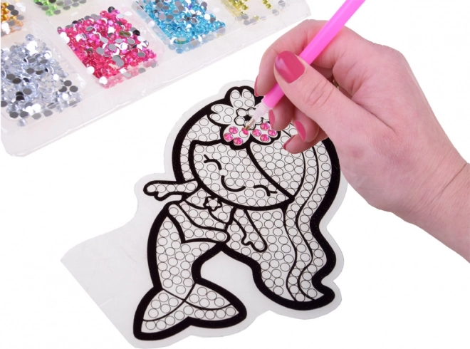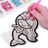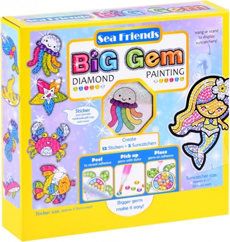 Táto sada Diamantové maľovanie Sea Friends umožní deťom vytvoriť trblietavé obrázky morských kamarátov. Stačí odlepiť ochrannú fóliu, nabrať kamienok aplikátorom s voskom a podľa farieb ho umiestniť na samolepku či šablónu s lepidlom. Ak sa kamienok prilepí nesprávne, môžete ho pred zaschnutím ľahko premiestniť.