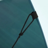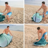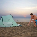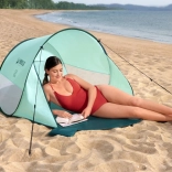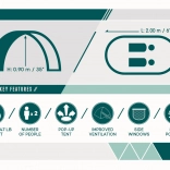 Premyslené vetranie s dvoma bočnými oknami a zadným sieťovaným panelom udržiava vo vnútri príjemnú klímu. 8 kolíkov a 4 vrecká na piesok zvyšujú stabilitu aj pri vetre, zatiaľ čo sklolaminátová konštrukcia je ľahká a pružná. Stan pohodlne pojme 2 dospelých a po zložení zaberie minimum miesta v priloženej taške.