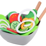 Sada na šalát prináša deťom autentický zážitok z varenia – od trhania listov, cez miešanie až po servírovanie. Diely z dreva a filcu sú príjemné na dotyk, odolné a vďaka realistickému spracovaniu pomáhajú učiť názvy zeleniny aj zásady zdravého stravovania.