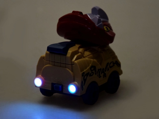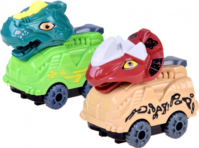 Dve tematické autíčka s hlavami dinosaurov svietia farebnými svetlami a ponúkajú dve rýchlosti pre ešte väčšiu zábavu.