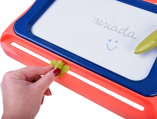 Praktický posúvač v tvare motýľa jedným ťahom vymaže celý obrázok. Deti môžu kresliť znova a znova bez potreby papiera.