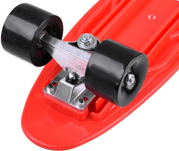 Hladkú jazdu zabezpečujú hliníkové trucky, polyuretánové kolieska 59 × 45 mm s dobrou priľnavosťou a ložiská ABEC 7 pre vyššiu rýchlosť a plynulé odvaľovanie aj na menej dokonalom povrchu. Mierne prehnutá päta dosky uľahčuje ovládanie a zatáčanie.