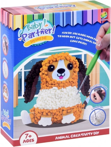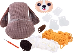 Objavte zábavnú DIY sadu, vďaka ktorej si deti samy vytvoria roztomilý vankúšik v tvare psíka. Na prevliekanie nie je potrebná ihla ani šitie – všetko zvládnete ľahko a bezpečne priloženým háčikom. Filcové časti (labky, ňufáčik, chvostík a topánočky) jednoducho prichytíte prevlečením priadze cez pripravené otvory.