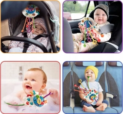 S jemnými zvukovými efektmi a mnohými textúrami, hračka podporuje rozvoj zmyslov dieťaťa.