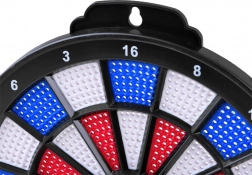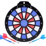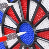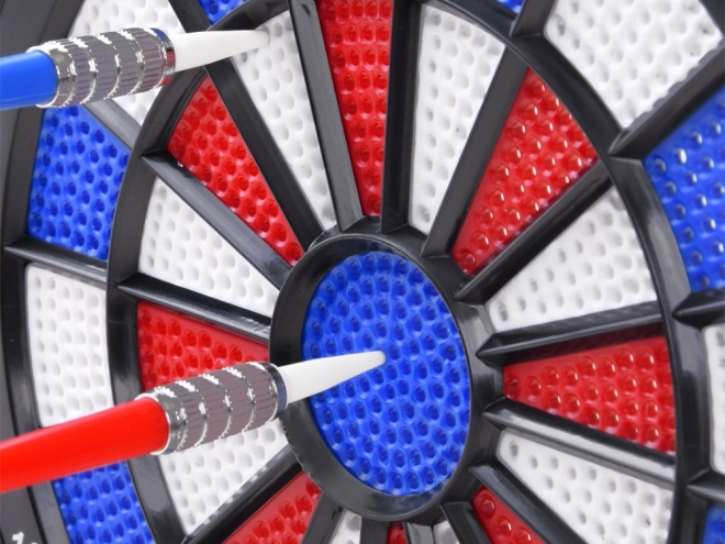Dartová doska je navrhnutá pre rekreačné použitie s červenými, modrými a bielymi segmentmi pre presné zacielenie a skórovanie.